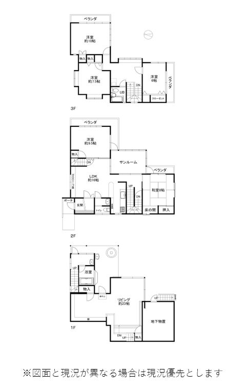 | 間取り | 5LLDK | 備考 | 分譲地規制有 土地2筆 水道名義変更料:30,000円+税 自治会費:12,000円/年(個人) 増築部分未登記 契約不適合責任免責 再建築時分譲地規制遵守 増築部分未登記 3階・1階居間・地下物置未登記 木造スレート葺:62.10㎡ 鉄筋コンクリート造:55.48㎡ 建物要修繕 ※古家付土地扱い |