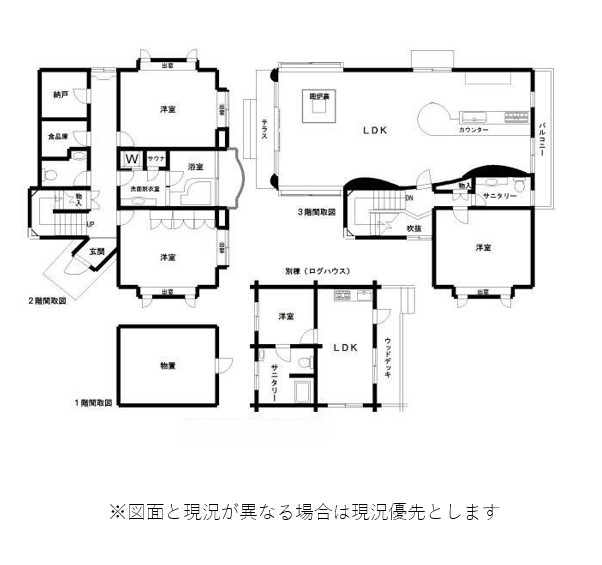 | 間取り | 3SLDK | 備考 | 分譲地規制有 温泉権利付 温泉名義変更料:50,000円+税 共益費:111,600+税/年(個人) ※2区画 下水道料金:4,000円+税/2ヶ月 別棟(ログハウス):22.09㎡(6.68坪) 駐車場1台可 ※営業行為不可 |